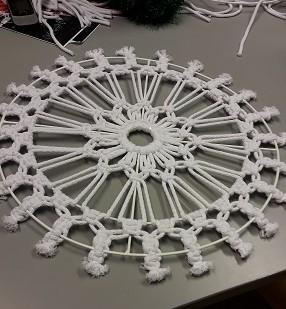 Makramee solmuilla tehty koriste.