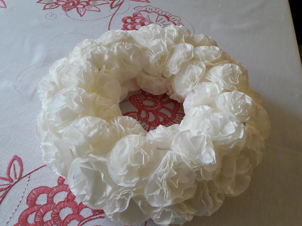 Suodatinpusseista tehty koriste.